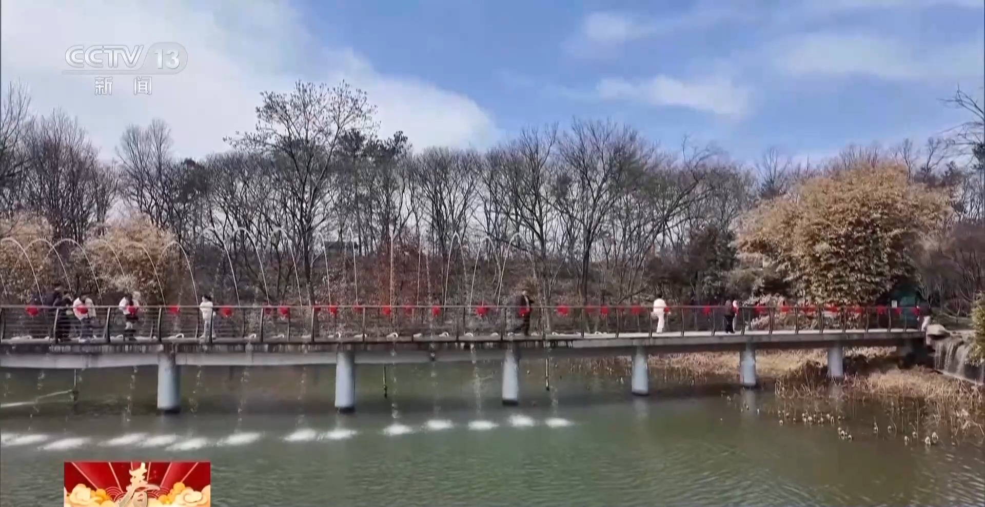 在河南信阳,南湾湖景区精心打造全方位沉浸式节日场景。随处可见的大红灯笼和新年挂饰喜气洋洋,春联和湖光山色相得益彰,让年味浸润景区每一个角落,营造出喜庆祥和的新春佳节氛围。